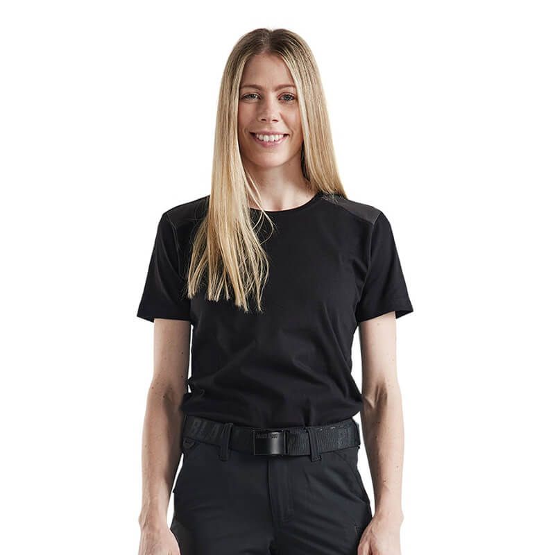 3479-1042 Dames Werk T-shirt Tweekleurig - Zwart/Donker Grijs 9998 - Blåkläder
