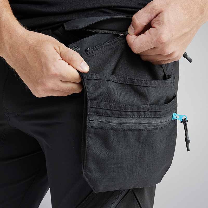- Reflecterende accenten aan de achterzijde en achterzakken met rits Stretch cargozak met ritssluiting en ID-houder