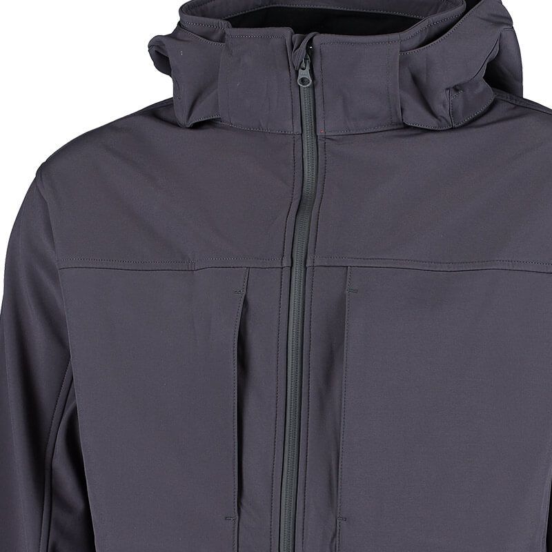 De unisex softshell werkjas met capuchon is gemaakt van 300 g/m² 96% polyester / 4% elastaan 3-laags waterdicht en ademend TPU-membraan, waterdichte 5000 WP en ademende 3000 MVP-stof.