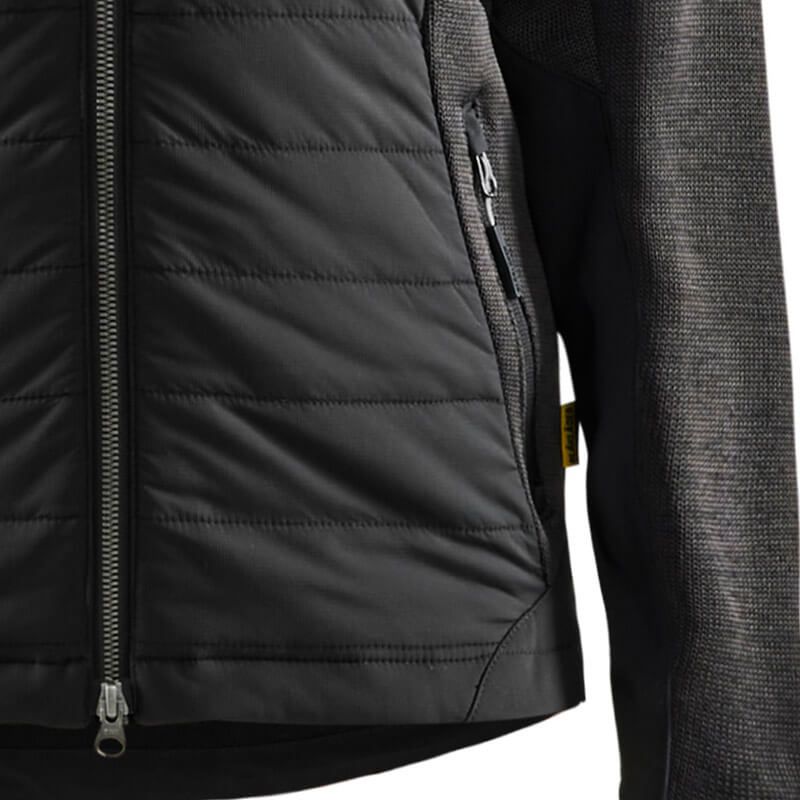 Een hybride jack ontworpen met damespasvorm met een dunne maar warme vulling aan de voor- en achterkant en in de capuchon en zachte shell-stof over de schouders, zijkanten romp en mouwen. Een comfortabel, soepel en warm jack voor wie in een koudere omgeving werkt en veel bewegingsvrijheid wil. Kan als jack of vest gedragen worden. Je bepaalt zelf hoe je het wilt dragen.