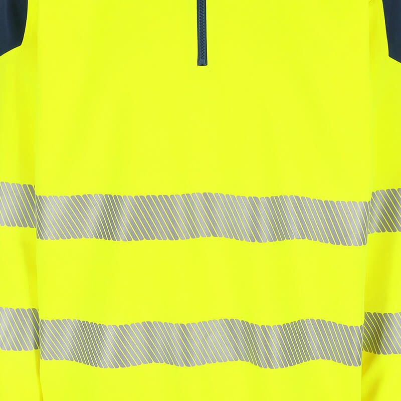 - Stijl: High-vis trui met halve rits