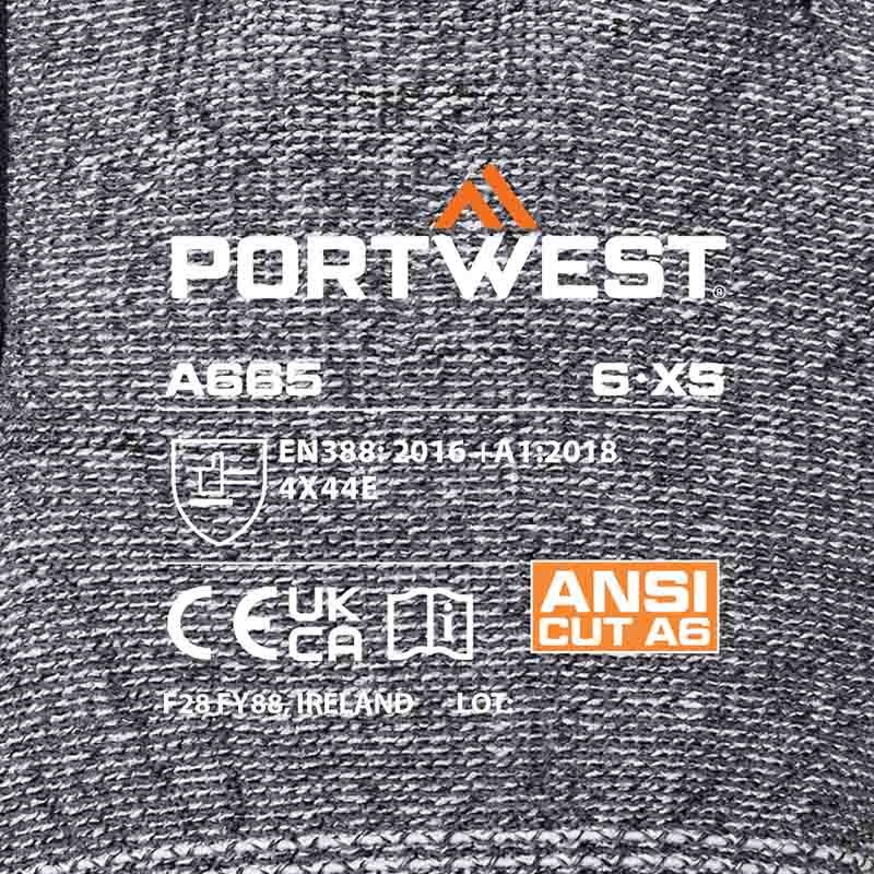De Portwest A665 is een snijbestendige handschoen met niveau E bescherming, ontworpen voor veeleisende werkzaamheden waarbij een sterke grip en maximale veiligheid nodig zijn. De nitrilschuim coating zorgt voor uitstekende grip in zowel natte als droge omstandigheden. Dankzij de palm-dip constructie biedt deze handschoen verbeterde vingergevoeligheid en ventilatie. Uitgevoerd met een naadloze 13 gauge voering voor optimaal comfort. ANSI Snijniveau A6.