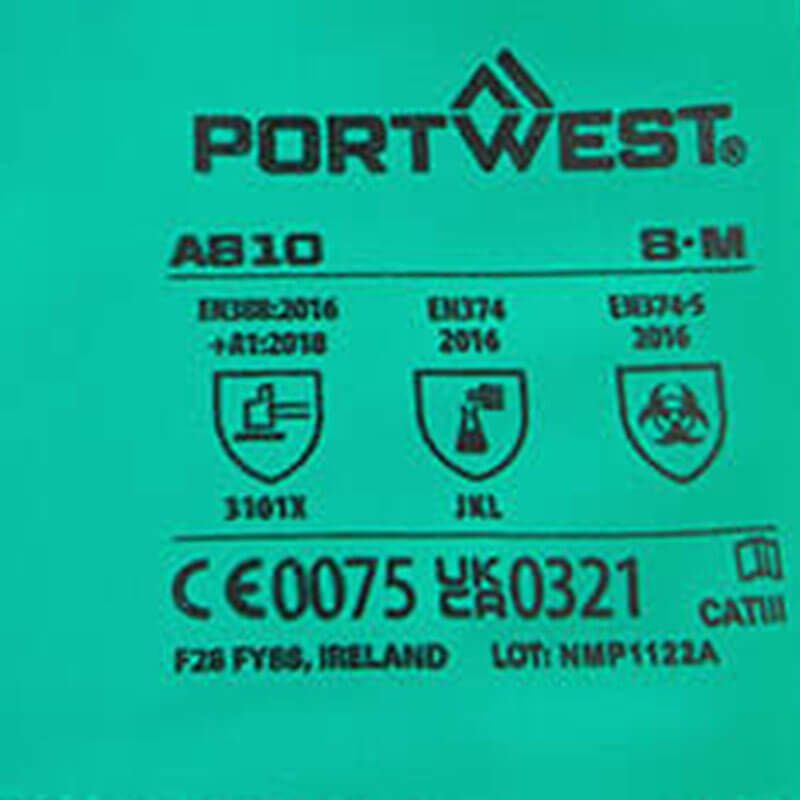 - Waarvoor zijn de Portwest A810 handschoenen geschikt? De A810 biedt bescherming tegen chemicaliën en is geschikt voor de chemische, olie- en voedingsmiddelenindustrie.