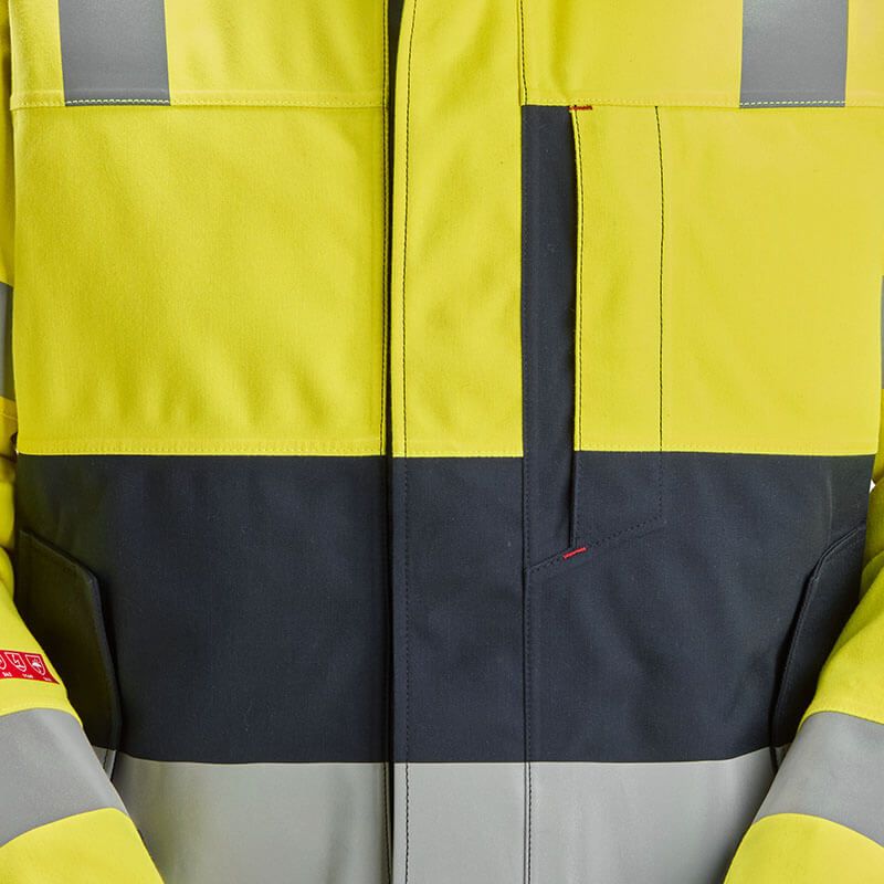 - Voor welke werkomgevingen is deze jas geschikt? Deze multinorm jas is ideaal voor werkomgevingen met meerdere risico’s, zoals hitte, vuur, elektrische vlambogen of chemische spatten bijvoorbeeld in de petrochemie, energieproductie of zwaar onderhoudswerk.